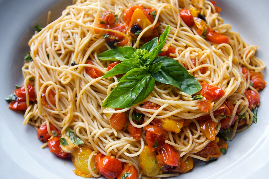 You throw everything into one pot—pasta, tomatoes, garlic, and broth—then simmer until tender. It trims both cook time and cleanup.
