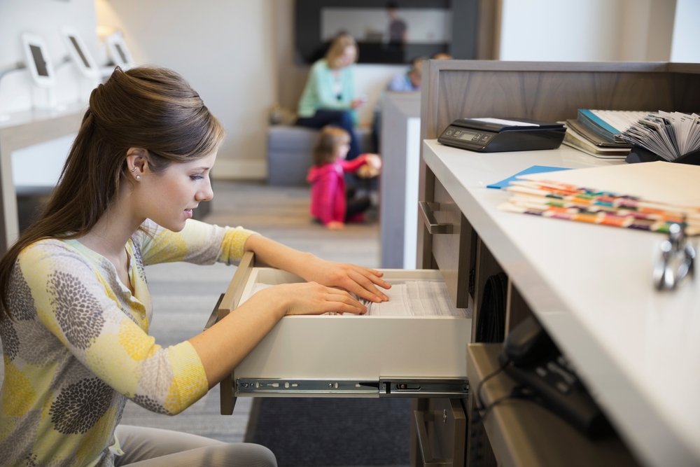 Not just in the room, but actively going through a drawer in her nightstand.